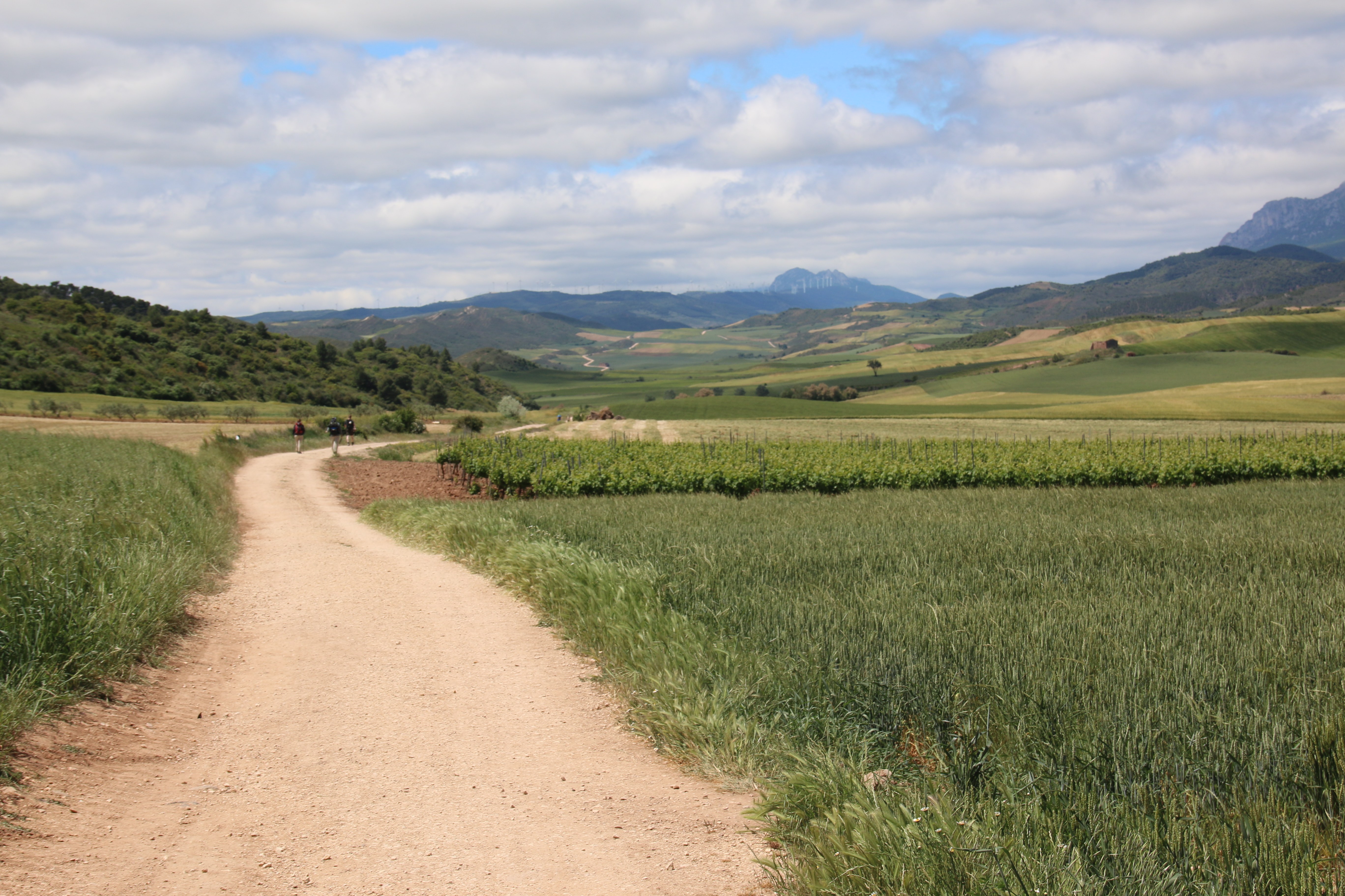 Unser Frühstück nahmen wir wie immer gemeinsam mit Reisegruppe Müller ein und konnten beim Lauschen der unüberhörbaren Gespräche gleich jede Menge positive Energie für den Tag tanken … und wir dachten schon wir hätten sie abgehängt. Zum Trost gab es gleich nach wenigen hundert Metern das erste Highlight des Tages – der Weinhahn der Bodegas Irache! Frühschoppen sozusagen 😉 Man wird beim Weinzapfen übrigens gefilmt damit man nicht aus Versehen eine ganze Flasche mit Wein abfüllt. Vermutlich sind unsere Bilder inzwischen schon im Internet auf dem „Weinpranger“ zu sehen, naja egal. Dafür dass der Wein kostenlos ist schmeckte er eigentlich ganz gut und die nächsten Kilometer zogen nur so an uns vorbei. Trotzdem waren wir heute recht gemütlich unterwegs da das treibende Drittel unseres Trios von immer wiederkehrenden Lachkrämpfen ausgebremst wurde, maßgeblich verursacht durch Erinnerungen an die geistigen Ergüsse einzelner Mitglieder der Reisegruppe Müller am Morgen. Nach dem Anstieg zu Villamayor Montjardin ging es auf breiten Feldwegen sanft bergab Richtung Los Arcos, ein kleines Dorf mit einer viel zu großen und prunkvollen Kirche. Im Hotel begrüßte uns wieder ein typisch spanisches Dreibettzimmer, also Wand-Bett-Bett-Bett-Wand. Na dann gute Nacht!