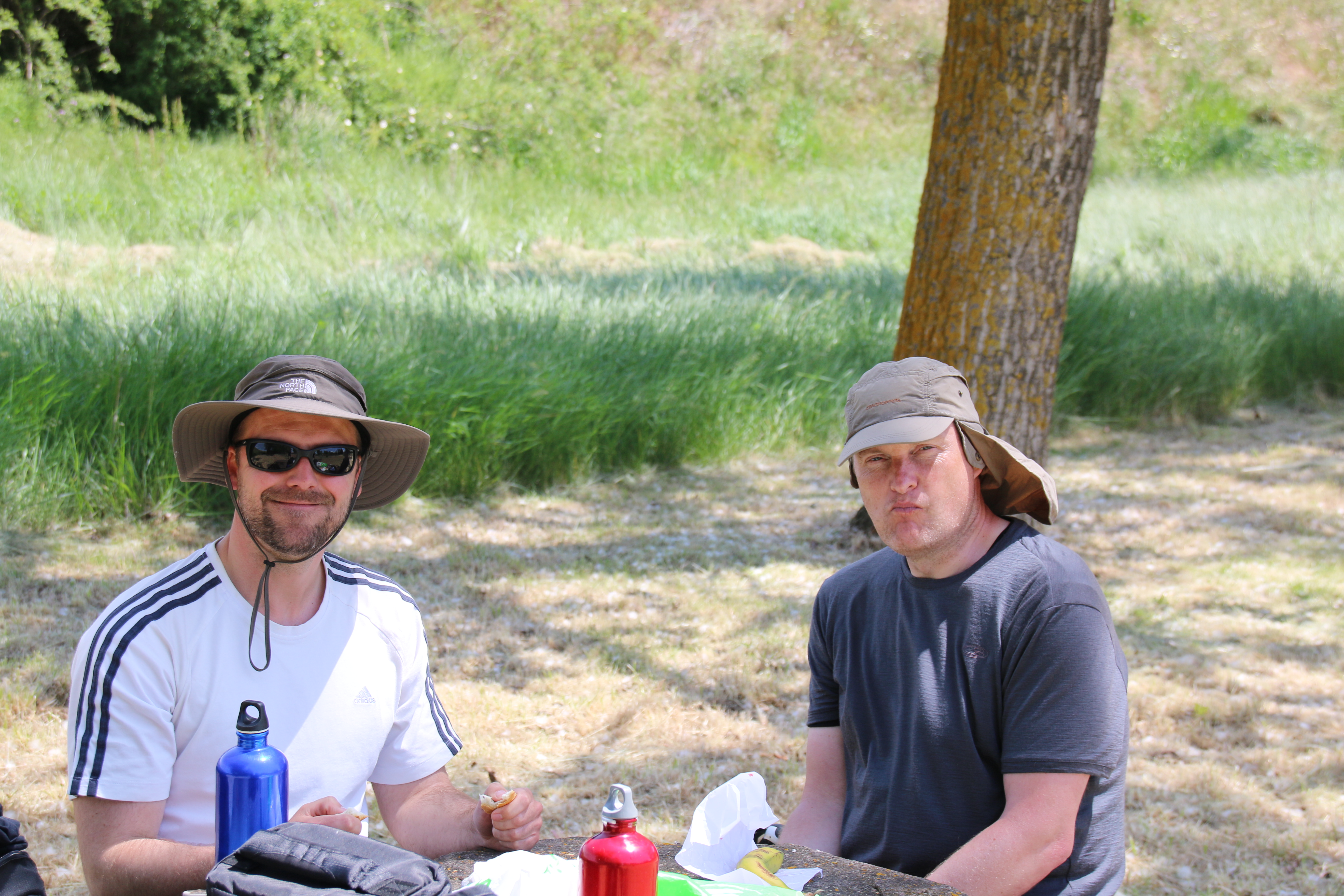 Die Landschaft unter einem blauen Himmel war weit und läufig. Seltsame Wesen mit Stöckern und merkwürdigen Säcken auf dem Rücken begleiteten uns heute den ganzen Tag. Einige sprangen herum wie kleine Kinder, andere wiederum bewegten sich unter seltsamen Verenkungen, gleiche humpelnden Greisen.