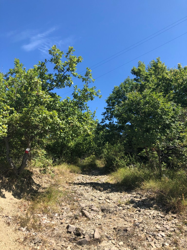 Wir kamen an eine kleine Ansiedlung und fanden dort nur mit Unterstützung der dortigen Bewohner einen offenbar sehr selten genutzten Trampelpfad, der uns extrem steil und durch dichtes Gestrüpp vorbei an alten Hausruinen irgendwann auf den eigentlichen Weg führte. Von da an quälten uns Hitze, ein gerölliger Untergrund sowie ein überaus brutale Steigung. Meinen Mitpilger zudem eine Ansammlung von Fliegen, die sich durch irgendetwas an ihm angezogen gefühlt haben. Ich verlieh ihm daher später den Titel heiliger Markus McFly.
