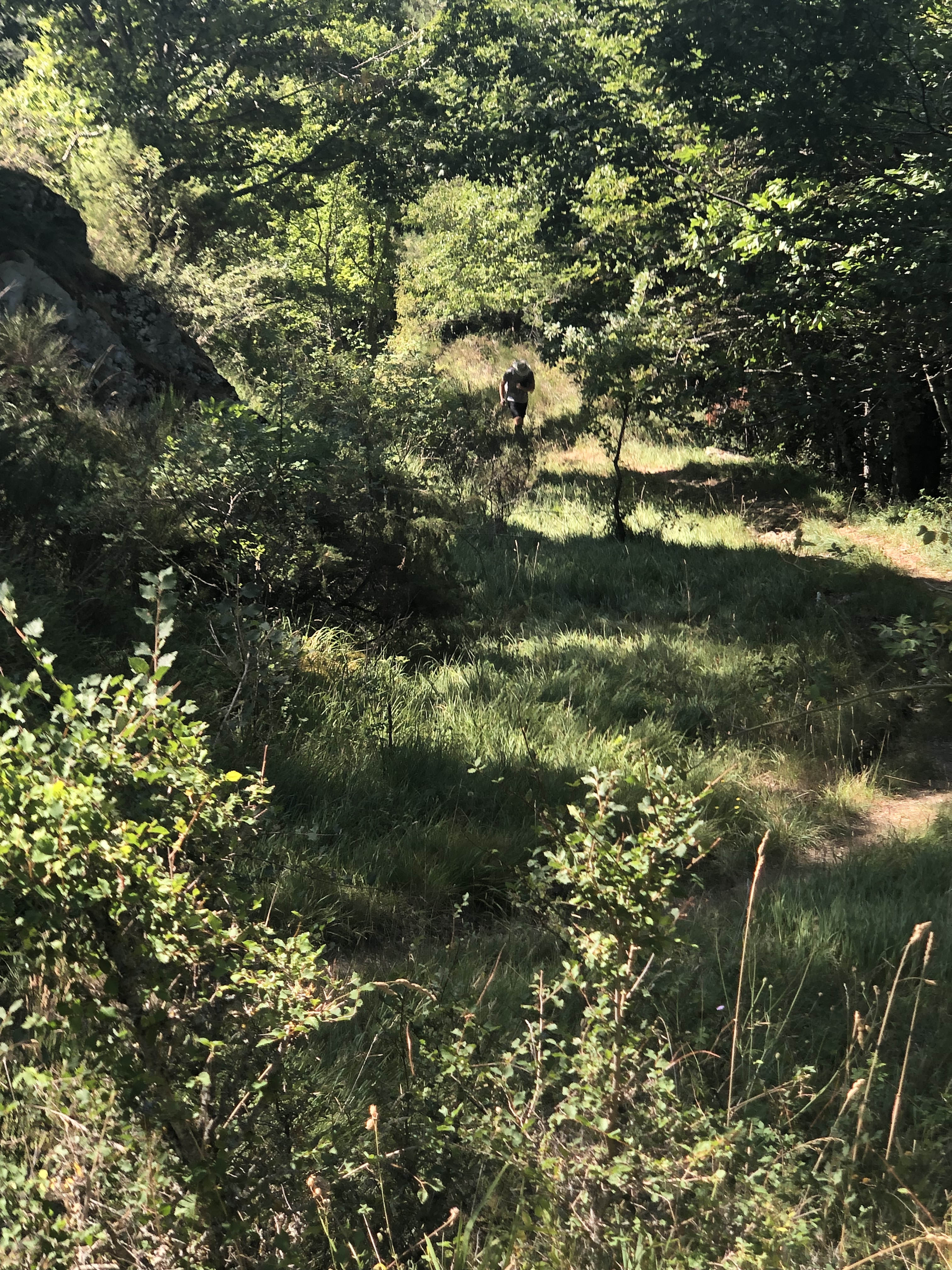 Wir kamen an eine kleine Ansiedlung und fanden dort nur mit Unterstützung der dortigen Bewohner einen offenbar sehr selten genutzten Trampelpfad, der uns extrem steil und durch dichtes Gestrüpp vorbei an alten Hausruinen irgendwann auf den eigentlichen Weg führte. Von da an quälten uns Hitze, ein gerölliger Untergrund sowie ein überaus brutale Steigung. Meinen Mitpilger zudem eine Ansammlung von Fliegen, die sich durch irgendetwas an ihm angezogen gefühlt haben. Ich verlieh ihm daher später den Titel heiliger Markus McFly.