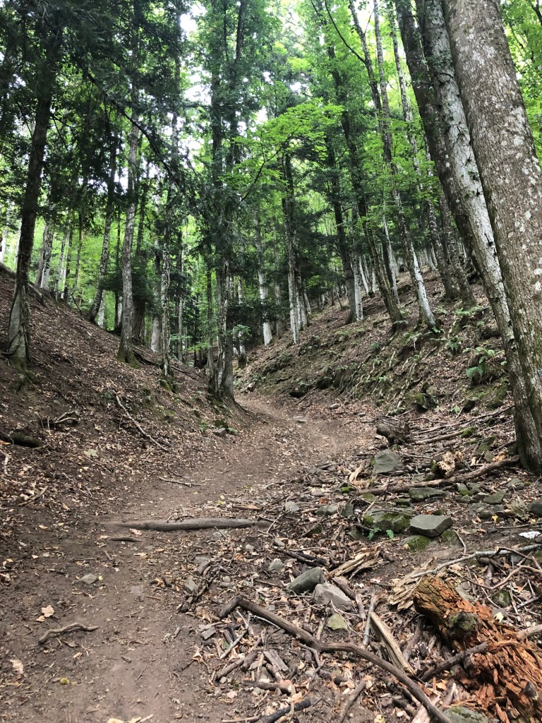 Das ganze Leben ist ein auf und ab. Das war auch das Höhenprofil für unsere heutige Tour. Nach einen guten Frühstück, wobei die Bedienung der Lautstärke und Frequenz nach beim Katastrophenschutz gearbeitet haben muss, ging es heute morgen gleich steil bergauf. Schon nach wenigen Metern war die Betriebstemperatur erreicht. Über zum Teil enge Wege mit Geröll und Wurzeln ging es steil bergauf. Nach gut drei Kilometern hatten wir den höchsten Punkt bei 1.250 Metern Höhe erreicht. Dann ging es im leichten auf und ab über den Kamm, bevor wir dann wieder die ganze Höhe bergab nach Badia Prataglia gingen. Dort machten wir unsere Brotzeit. Die Stempelsuche gestaltete sich etwas schwierig. Weder in der menschenleere Kirche noch in der Touristeninformation bekamen wir unsere Stempel. Besonders die Dame in der Touristinfo glänzte durch eine ausgeprägte Freundlichkeit. Unsere Stempel bekamen wir dann mit einem Espresso in einer Bar. In dem Ort trafen wir auch das Boston-Duo wieder. Die beiden waren ebenfalls in Camaldoli gestartet, sind jedoch in Badia Prataglia geblieben. Unser Tagesziel war jedoch Biforco. Also den Rucksack übergehangen, und es ging weiter. Wieder ging es gleich nach dem Ort über drei Kilometer steil bergauf, wieder über schlechte Wege, und wieder danach steil bergab. Das tat weh. Und zum Schluss noch einmal ein 100 Meter Anstieg bis zum Ort. Unsere Unterkunft heute ist ein B&B in einem alten gemütlichen Haus , wobei wir das gesamte Gebäude für uns haben. Unser Abendessen duftet so herrlich die Treppe hinauf, das ich hier jetzt aufgrund Konzentrationsproblemen aufhöre……