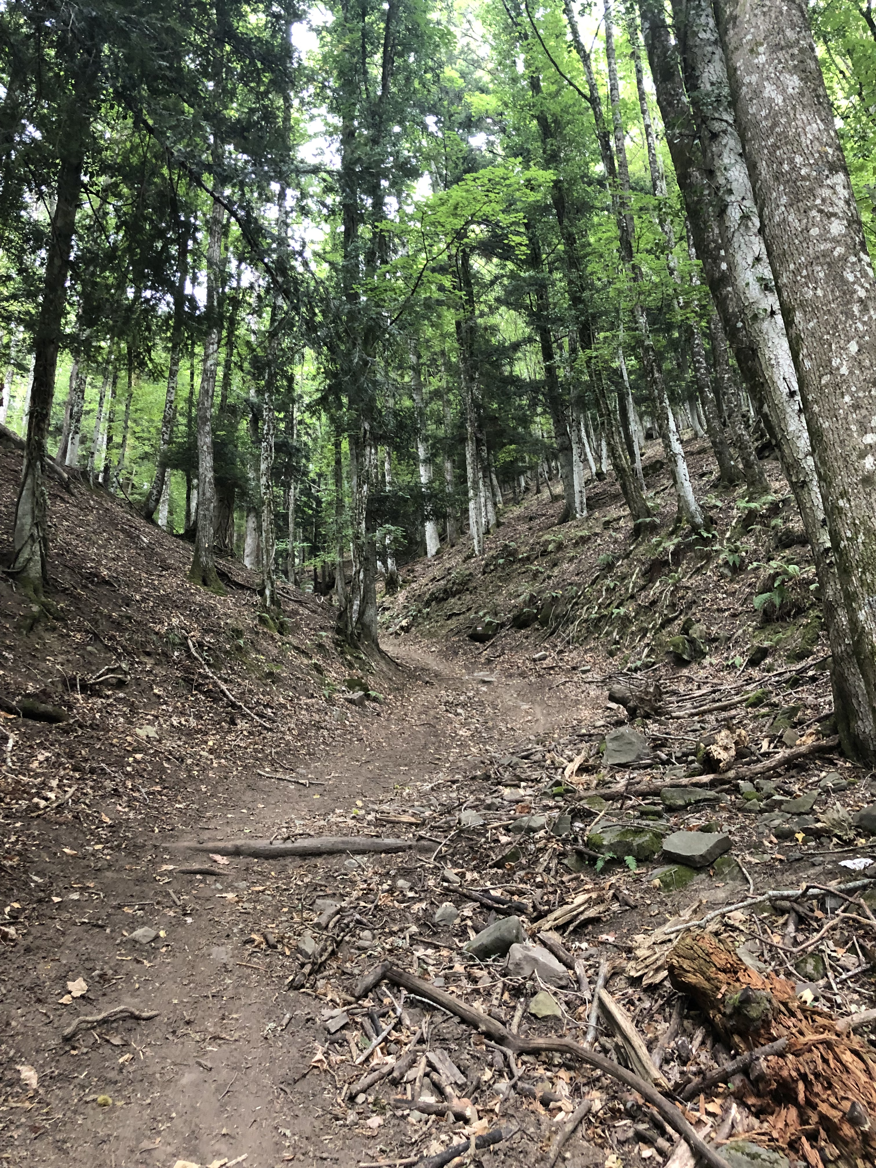 Das ganze Leben ist ein auf und ab. Das war auch das Höhenprofil für unsere heutige Tour. Nach einen guten Frühstück, wobei die Bedienung der Lautstärke und Frequenz nach beim Katastrophenschutz gearbeitet haben muss, ging es heute morgen gleich steil bergauf. Schon nach wenigen Metern war die Betriebstemperatur erreicht. Über zum Teil enge Wege mit Geröll und Wurzeln ging es steil bergauf. Nach gut drei Kilometern hatten wir den höchsten Punkt bei 1.250 Metern Höhe erreicht. Dann ging es im leichten auf und ab über den Kamm, bevor wir dann wieder die ganze Höhe bergab nach Badia Prataglia gingen. Dort machten wir unsere Brotzeit. Die Stempelsuche gestaltete sich etwas schwierig. Weder in der menschenleere Kirche noch in der Touristeninformation bekamen wir unsere Stempel. Besonders die Dame in der Touristinfo glänzte durch eine ausgeprägte Freundlichkeit. Unsere Stempel bekamen wir dann mit einem Espresso in einer Bar. In dem Ort trafen wir auch das Boston-Duo wieder. Die beiden waren ebenfalls in Camaldoli gestartet, sind jedoch in Badia Prataglia geblieben. Unser Tagesziel war jedoch Biforco. Also den Rucksack übergehangen, und es ging weiter. Wieder ging es gleich nach dem Ort über drei Kilometer steil bergauf, wieder über schlechte Wege, und wieder danach steil bergab. Das tat weh. Und zum Schluss noch einmal ein 100 Meter Anstieg bis zum Ort. Unsere Unterkunft heute ist ein B&B in einem alten gemütlichen Haus , wobei wir das gesamte Gebäude für uns haben. Unser Abendessen duftet so herrlich die Treppe hinauf, das ich hier jetzt aufgrund Konzentrationsproblemen aufhöre……