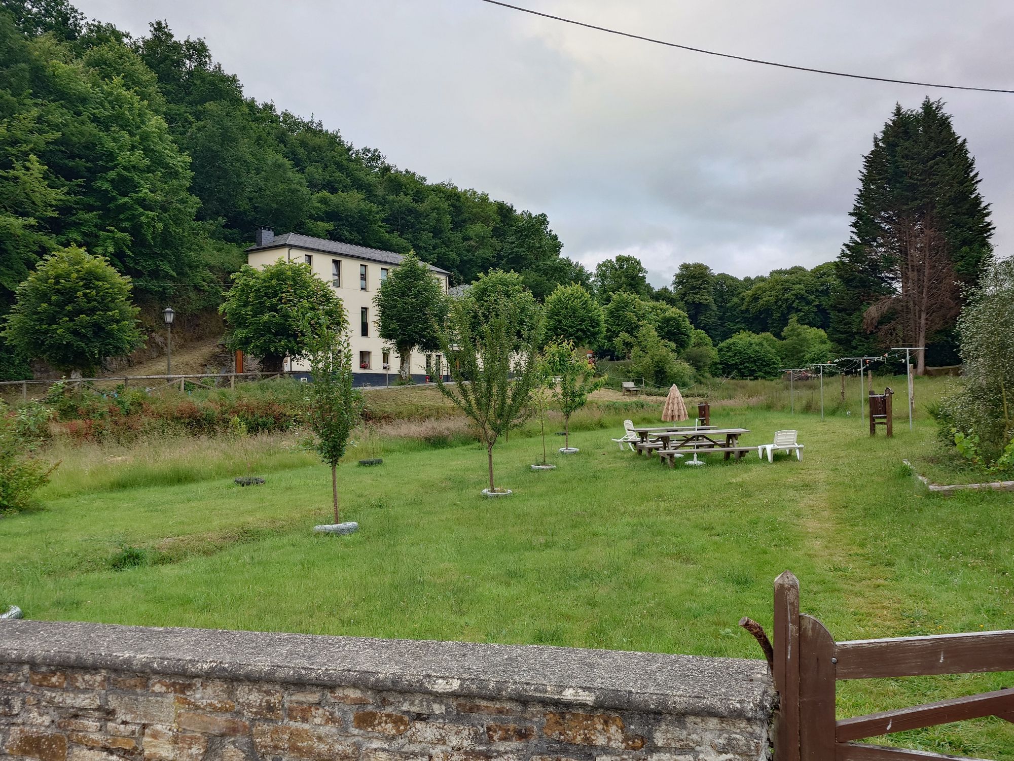 Der Weg von der Grenze bis zur Stadt war ein leichtes Auf- und Ab, jedoch der letzte Kilometer hatte es in sich. A Fonsagrada liegt auf einem Berg, man konnte es schon früh am Tag sehen. Aber davor gibt es ein Tal, und von dort einen 1 Kilometer langen sehr steilen Aufstieg. Das war wirklich noch einmal eine Prüfung mit all den Kilometern und Höhenmetern in den Beinen. Aber irgendwann war ich oben. Und wie immer gab es die Abendroutine: Bett beziehen, Duschen, Wäsche waschen und aufhängen, Und dann auf dem Bett die Füße hochlegen und auf den Abend warten.