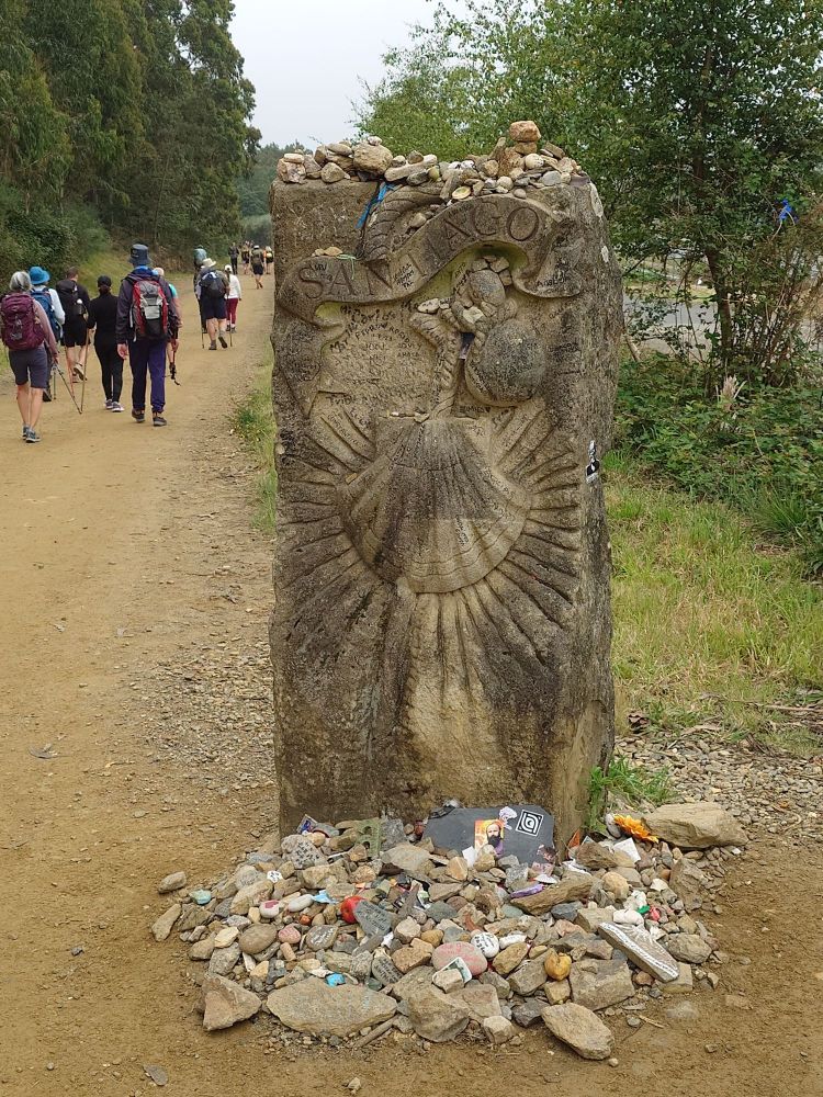 Heute morgen bin ich langsam losgelaufen. Ein übliches Frühstück mit Cafe con leche und Croissant im Ort, und dann Musik in die Ohren. In Lavacolla habe ich Rast an dem rituellen Waschplatz gemacht, die anderen Leute sind nur schnell an mir vorbei gehastet. Und dann auf dem Monte de Gonzo, der erste Blick auf die Kathedrale. Auch hier habe ich eine längere Rast gemacht. Die darauf folgenden letzten 5 Kilometer habe ich dann genossen. Den Berg hinunter, in die Stadt hinein. Durch den Vorort Richtung Innenstadt. Dann durch die Gassen Richtung Kathedrale. Der Dudelsackspieler im Torbogen zum Kirchenplatz war da, und auch mein Sitzplatz auf der Steinbank ganz rechts vom Platz war frei.